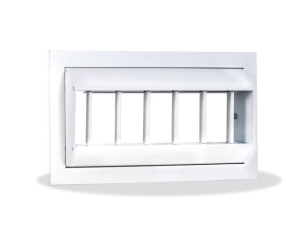 蛋格式風(fēng)口最大限度的提供了風(fēng)口的面積,透視空間稍小。該風(fēng)口通常是作為送風(fēng)或回風(fēng)來用,安裝在吊頂或墻上。另外,可配人字閥用于風(fēng)量調(diào)節(jié)。
