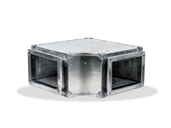 消聲彎頭例似于管道消聲器,也是阻抗消聲器中的一種,是將直管的消聲器變?yōu)閺澒艿南暺鳌? ·結(jié)構(gòu) 消聲腔內(nèi)壁填塞50mm厚離心玻璃棉,外覆玻璃布及3mm孔徑多孔板,龍骨為鍍鋅板。 主要技術(shù)參數(shù):消聲量:7dB(A) 阻力損失:2.5mmH,O(當(dāng)風(fēng)速為6m/s時(shí))